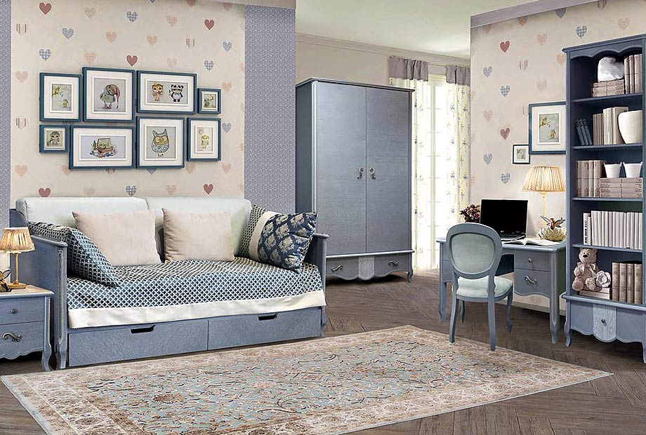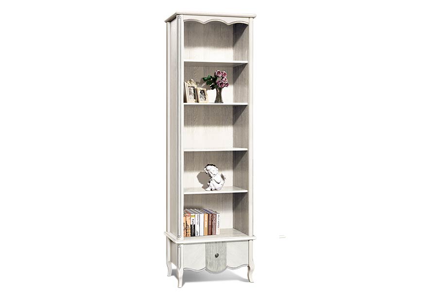 Стеллаж «Katrin» в цвете "альба с серебряной патиной" прекрасно впишется в интерьер спальни и детской. На открытых полках Вы можете расставить свои любимые книги, статуэтки и сувениры, а в выдвижном ящике хранить необходимые мелочи.