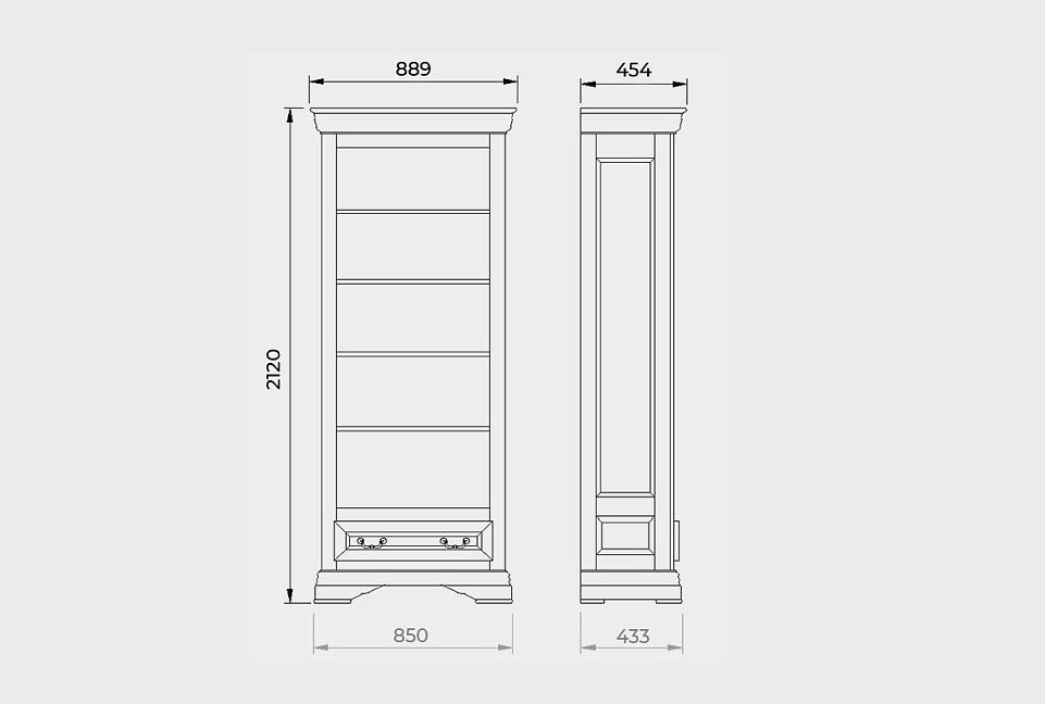✅ Стеллаж выполнен из массива и шпона ольхи.