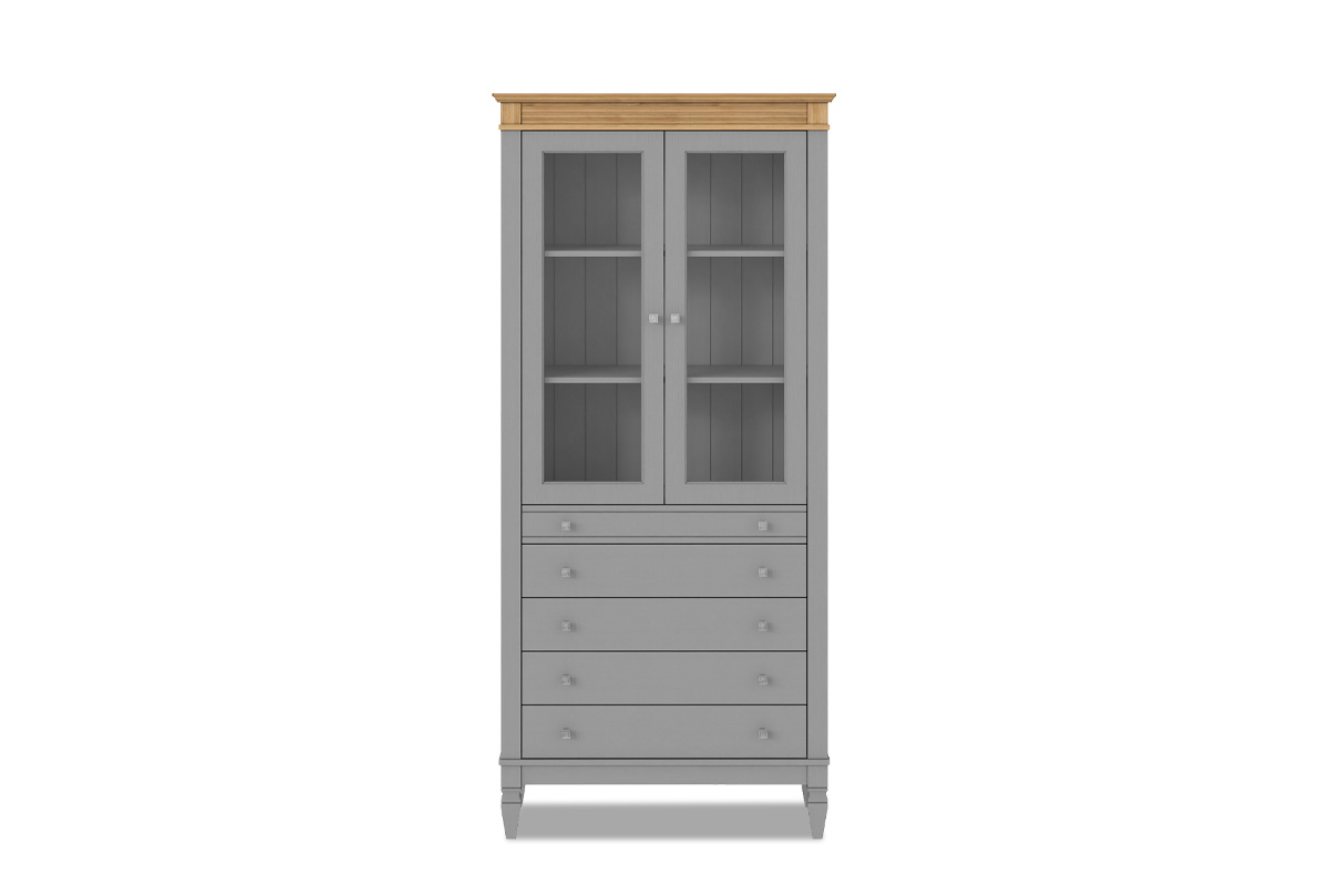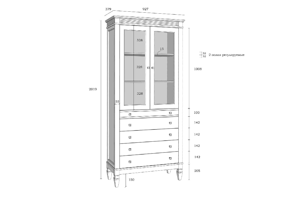 ✅ Оснащен пятью ящиками и двумя стеклянными дверками.