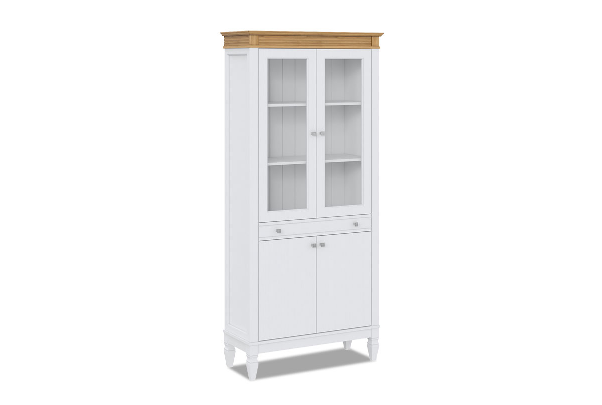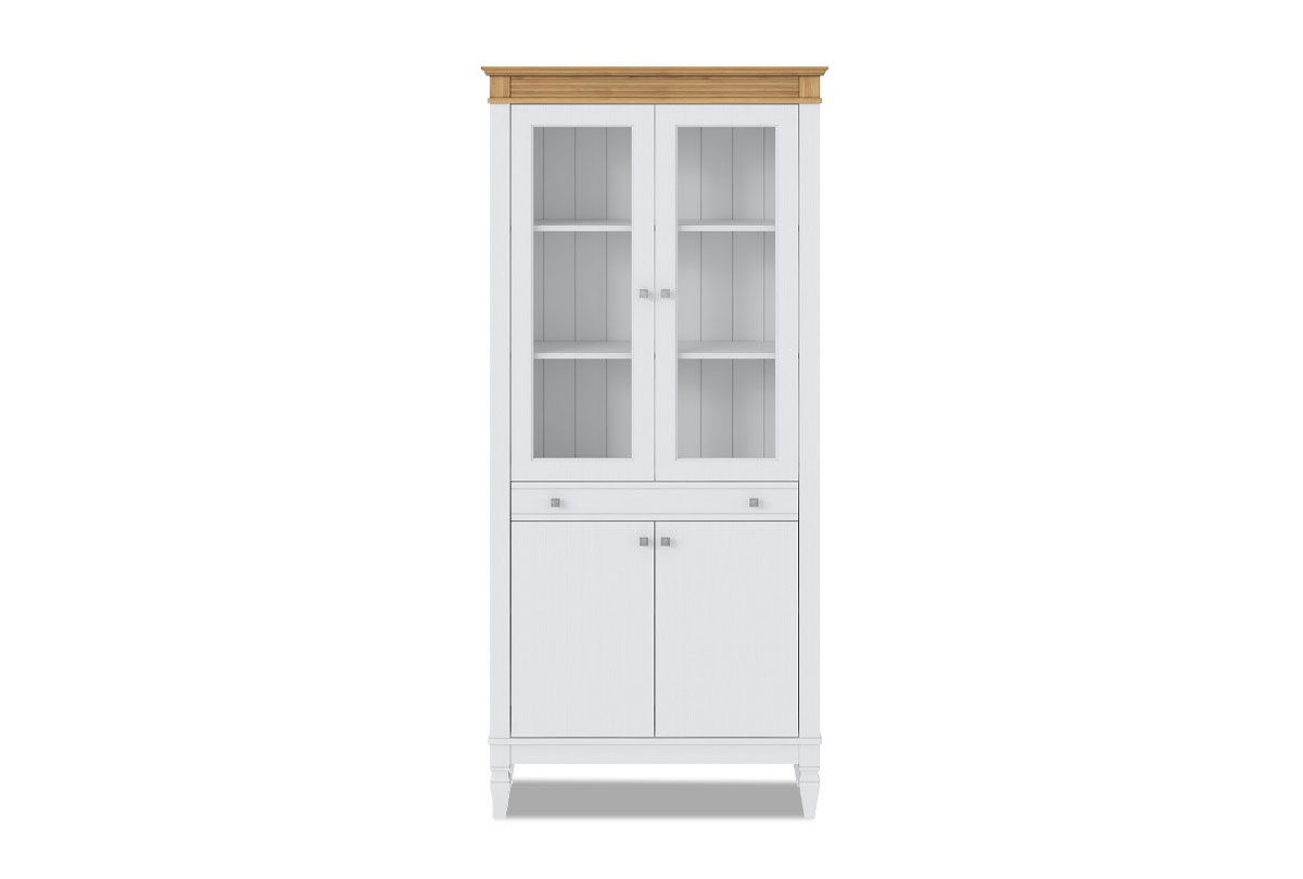 ✅ Оснащен внутри вместительными полками, двумя дверями (филенка), двумя стеклянными дверями и одним выдвижным ящиком.