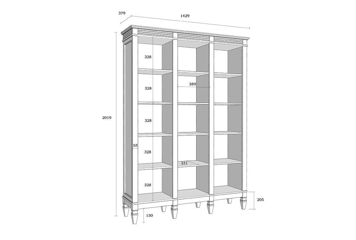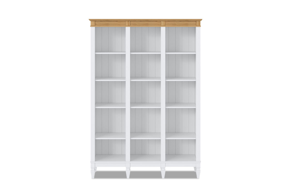 Стеллаж "Ольса" 300/000. Размеры (ШxВxГ) 1430 x 2020 x 380 мм. Большой и вместительный стеллаж - находка для просторной гостиной, библиотеки или кабинета. Здесь вы сможете разместить не только любимые книги, но и посуду, постельное белье и другие нужные вещи: при желании его можно дополнить комплектом навесных дверей. Визуально разделен на три вертикальных секции, в каждой из которых четыре полки. Сделан из натурального массива, поэтому может выдерживать значительные нагрузки.
