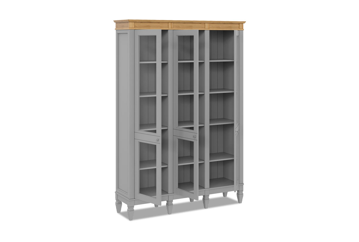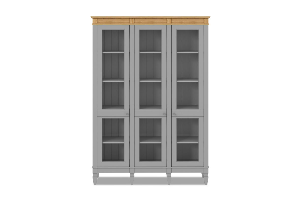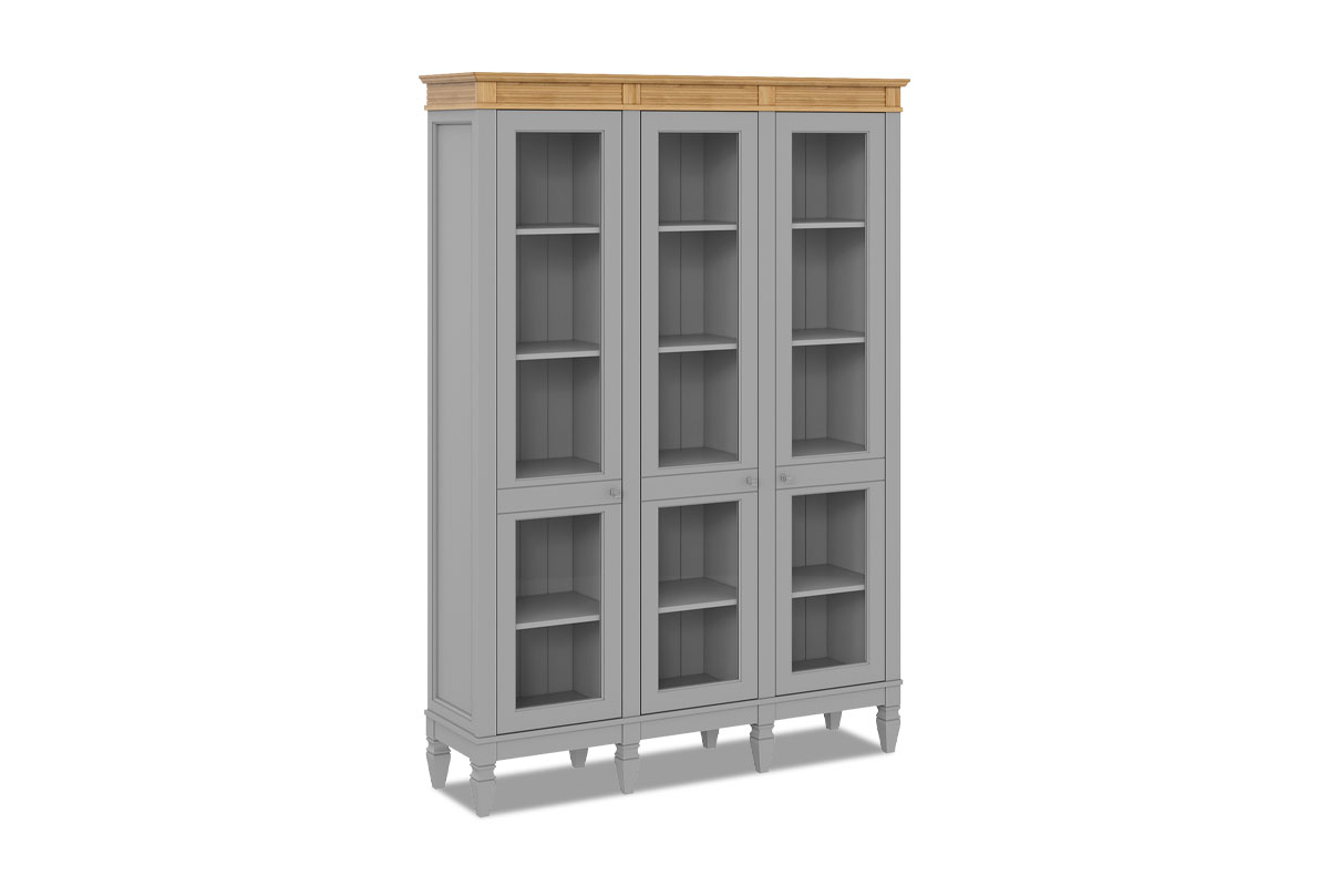 ✅ Оснащен четырьмя полками в каждой их трех секций, тремя дверями со стеклянными вставками.