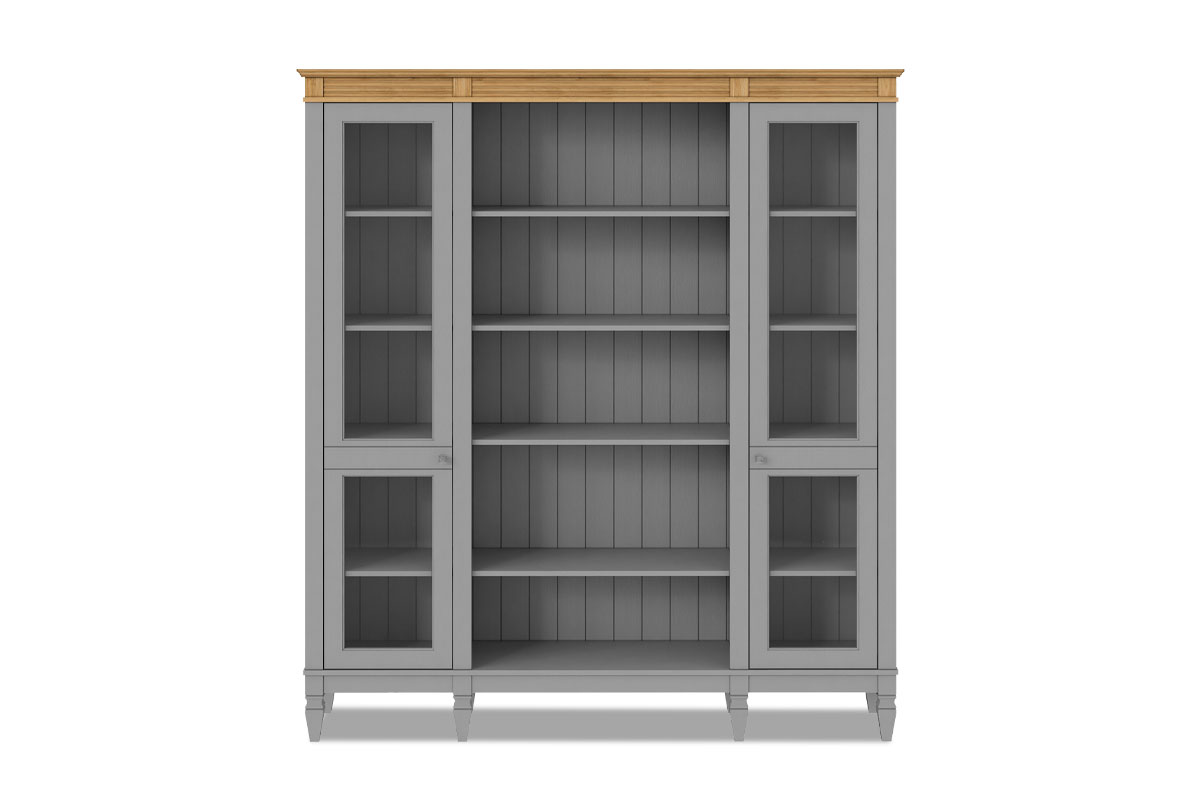 Стеллаж «Ольса» 420/000. Размеры (ШxВxГ) 1816 x 2020 x 380 мм. Этот большой и вместительный стеллаж «Ольса» - находка для просторной гостиной, библиотеки или кабинета. Здесь вы сможете разместить не только любимые книги, но и посуду и другие нужные вещи. Визуально разделен на три вертикальных секции, в каждой из которых четыре полки. Оснащен двумя стеклянными распашными дверьми. Сделан из натурального массива, поэтому может выдерживать значительные нагрузки.