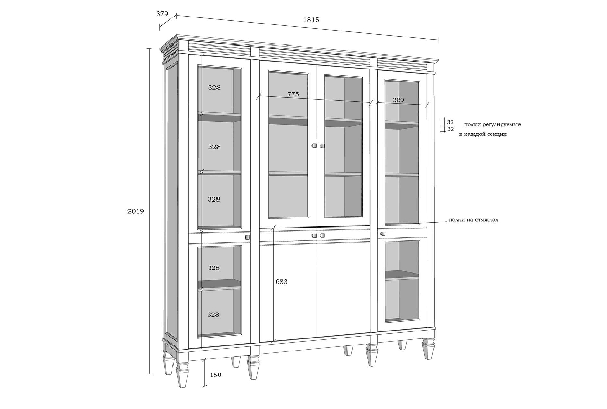 ✅ Оснащен четырьмя стеклянными распашными дверями и двумя дверями филенкой.