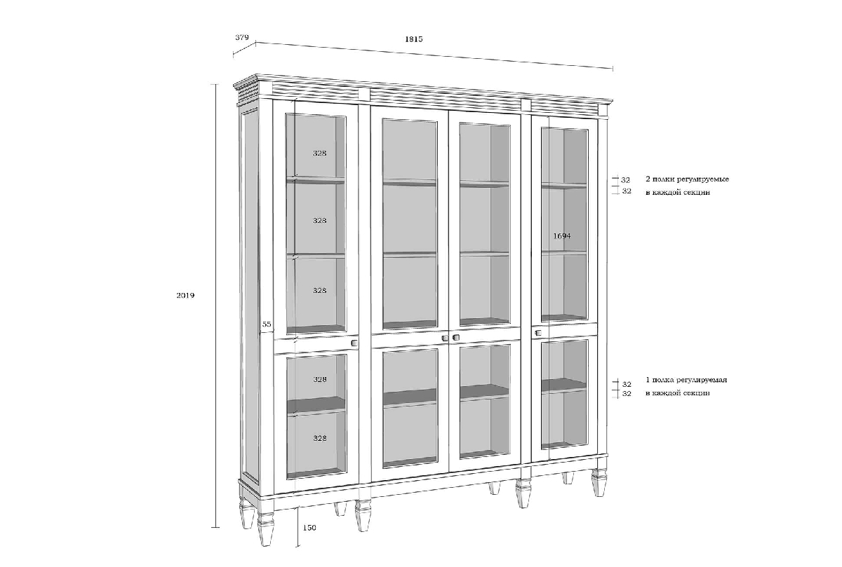 ✅ Оснащен четырьмя стеклянными распашными дверями.