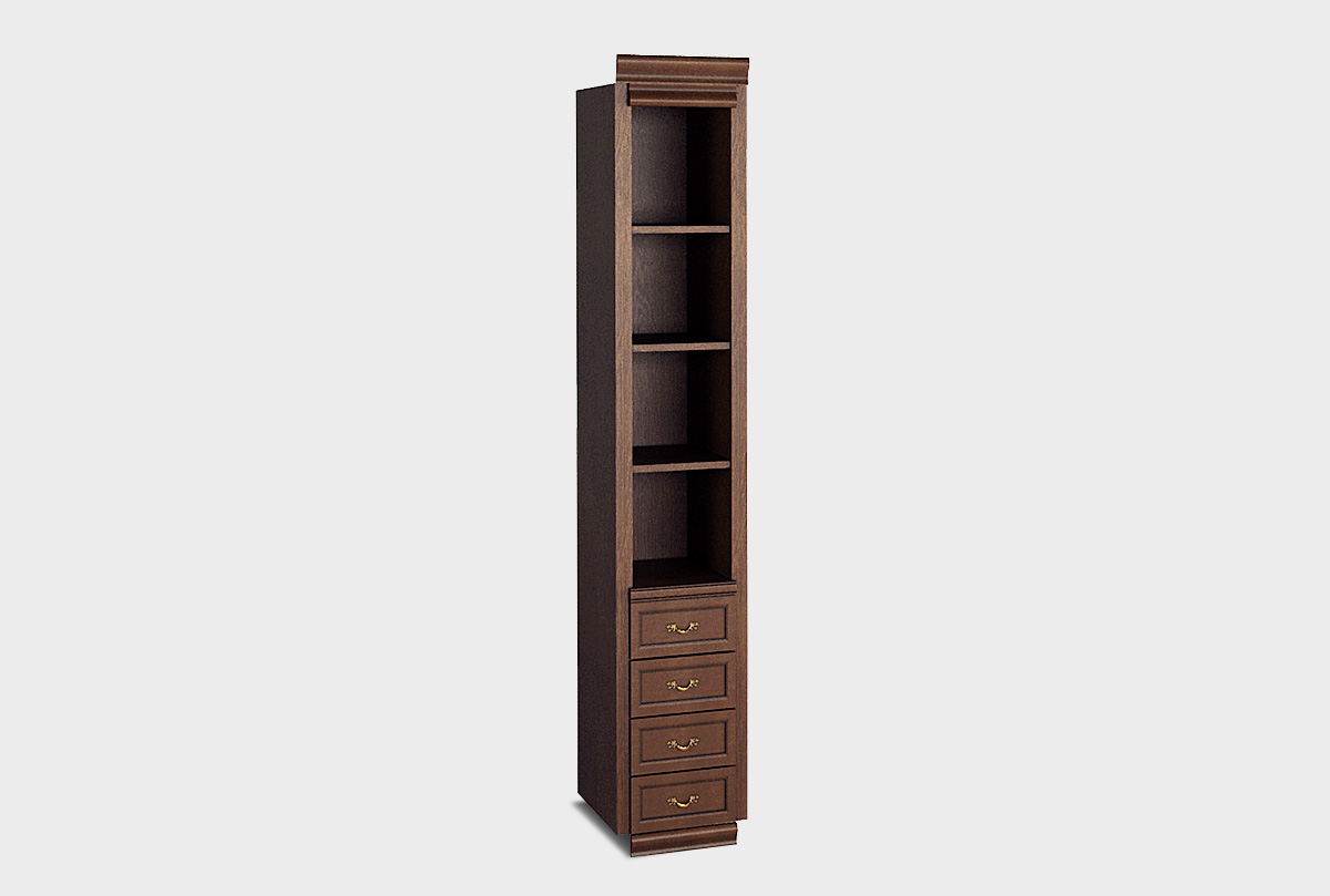 Стеллаж с ящиками «Оскар» (Oskar) из массива и шпона дуба станет прекрасным дополнением как к кабинету в классическом стиле, так и к гостиной или спальне.
