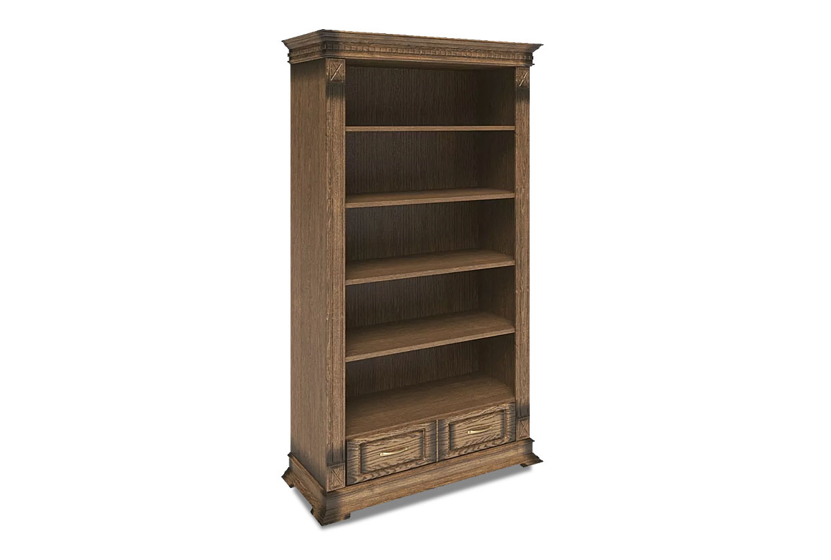 Широкий стеллаж «Верди Люкс 2» из дуба в классическом стиле. Размеры изделия 1148 х 1996 х 477 мм.