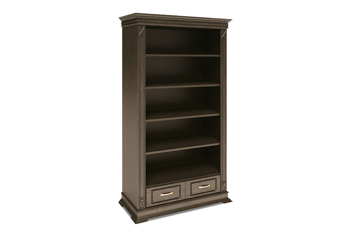 Широкий стеллаж «Верди Люкс 2» из дуба в классическом стиле. Размеры изделия 1148 х 1996 х 477 мм.