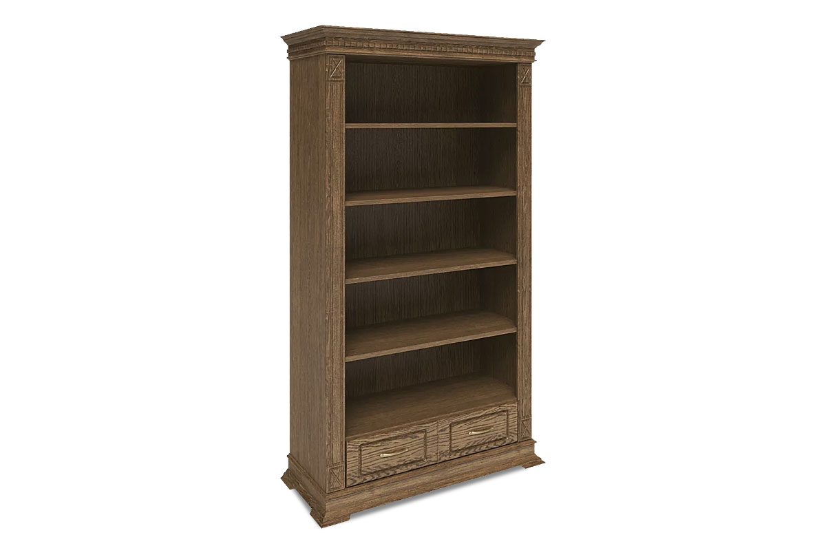Широкий стеллаж «Верди Люкс 2» из дуба в классическом стиле. Размеры изделия 1148 х 1996 х 477 мм.