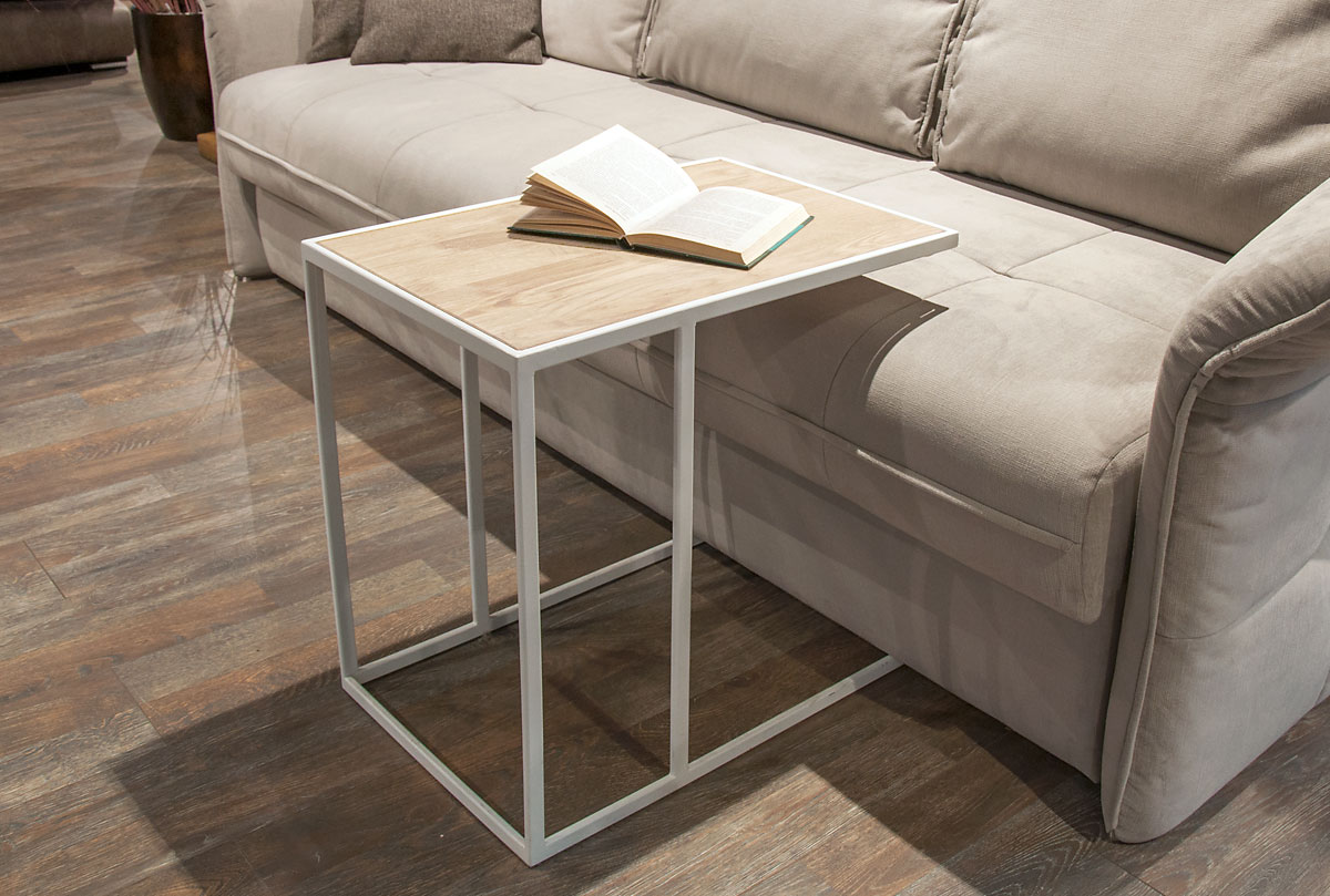Стол кофейный "Art Collection" приставной, белёный дуб + белый металл, (.Г000049926)