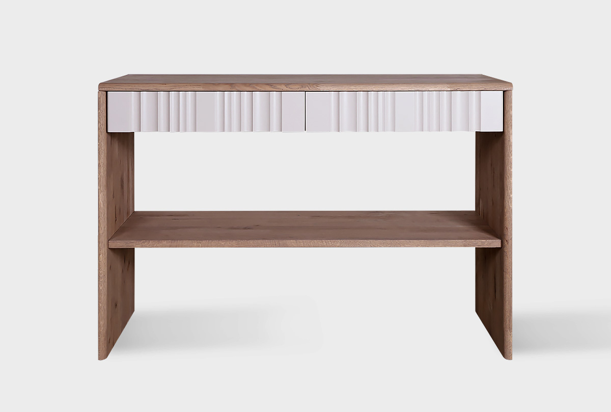 Стол-консоль «Меридиан» — изящный акцент, который способен объединить пространство или мягко выделиться на фоне интерьера. Прямолинейная форма корпуса контрастирует с художественным рельефом фронтальной панели.