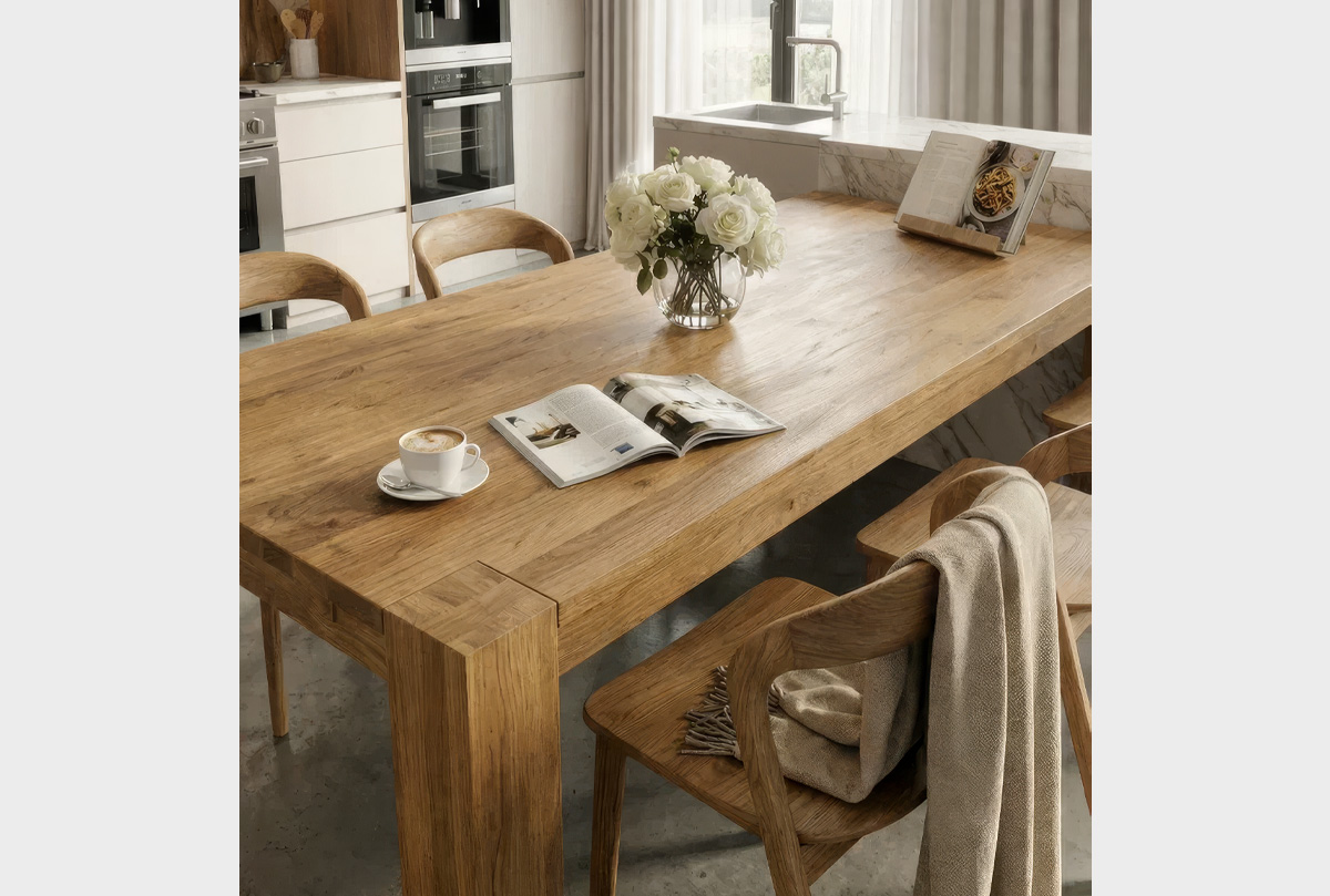 ✅ Экологичная отделка: натуральный дуб пропитан только бейц-маслом (европейского пр-ва), которое наносится вручную. На поверхности образуется защитная гидрофобная пленка, благодаря которой покрытие впитывается в структуру дерева, но не оставляет следов на одежде или предметах, которые контактируют с поверхностью.