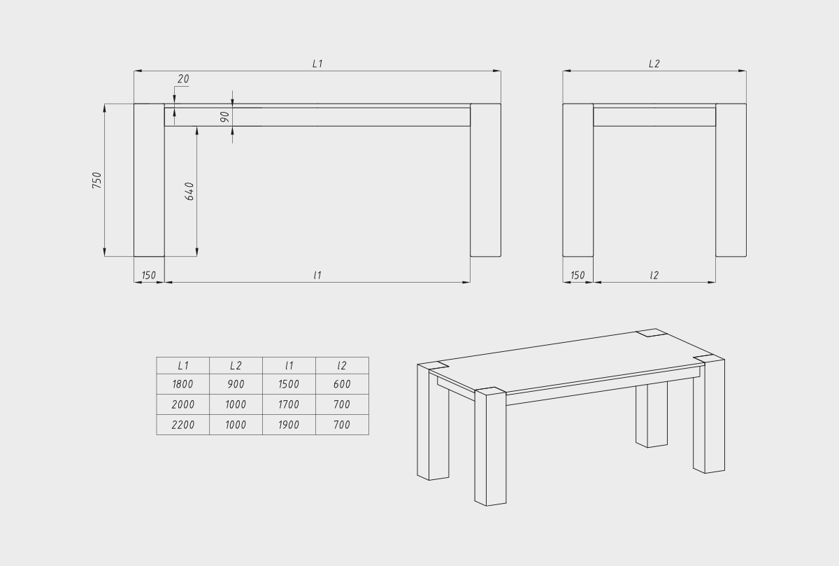 Стол обеденный "Берген" П-03 (сечение опор 150х150), (УТ-00001960)