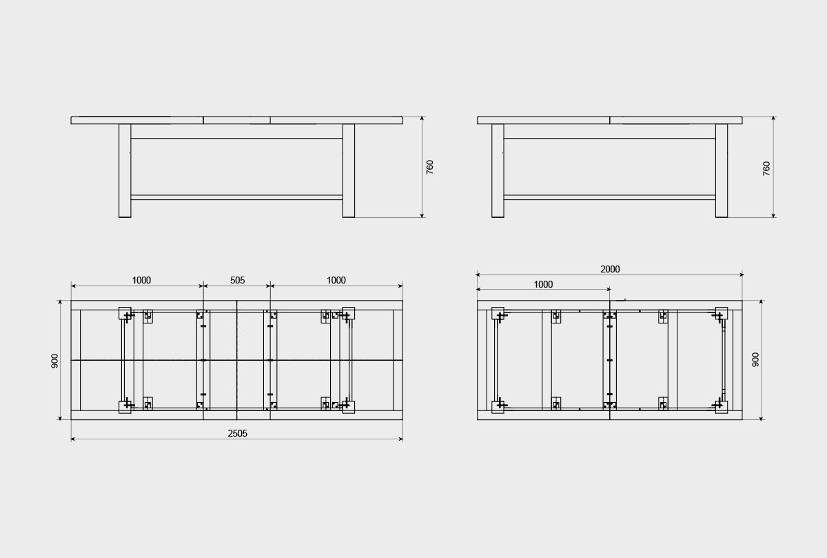 ✅ Размеры: ширина 2000/2500 мм, высота 760 мм, глубина 900 мм.