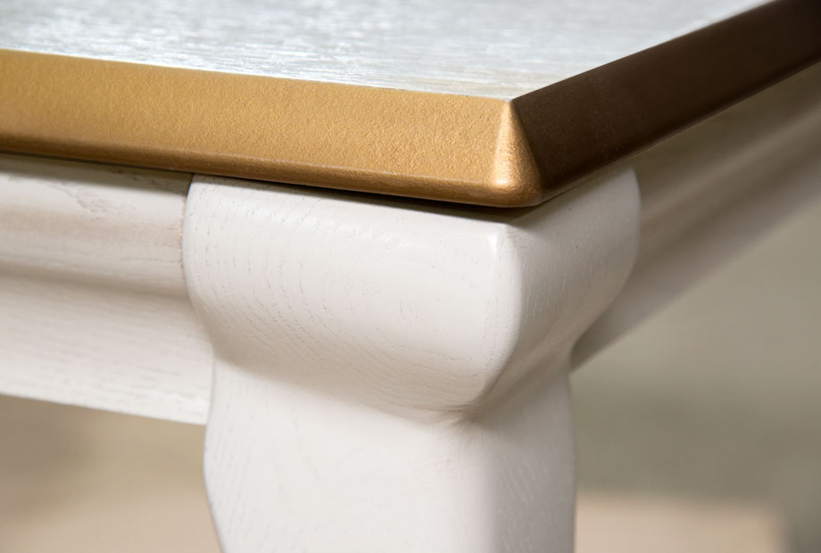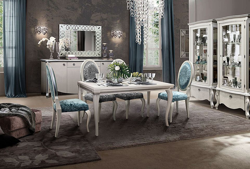 Обеденный стол «Луиза» входит в неподражаемую коллекцию Luiza. Благодаря массивной столешнице и изящным ногам такой стол станет не только функциональным предметом интерьера, но и украшением Вашей гостиной или столовой. За ним будет приятно собирать друзей на вечеринку или проводить уютные семейные вечера. Стол комфортно вмещает от 4 до 6 человек, он выполнен из массива дуба, тонированного в теплый коньячный оттенок, белую эмаль с серебряной патиной и серебряный кракелюр.
