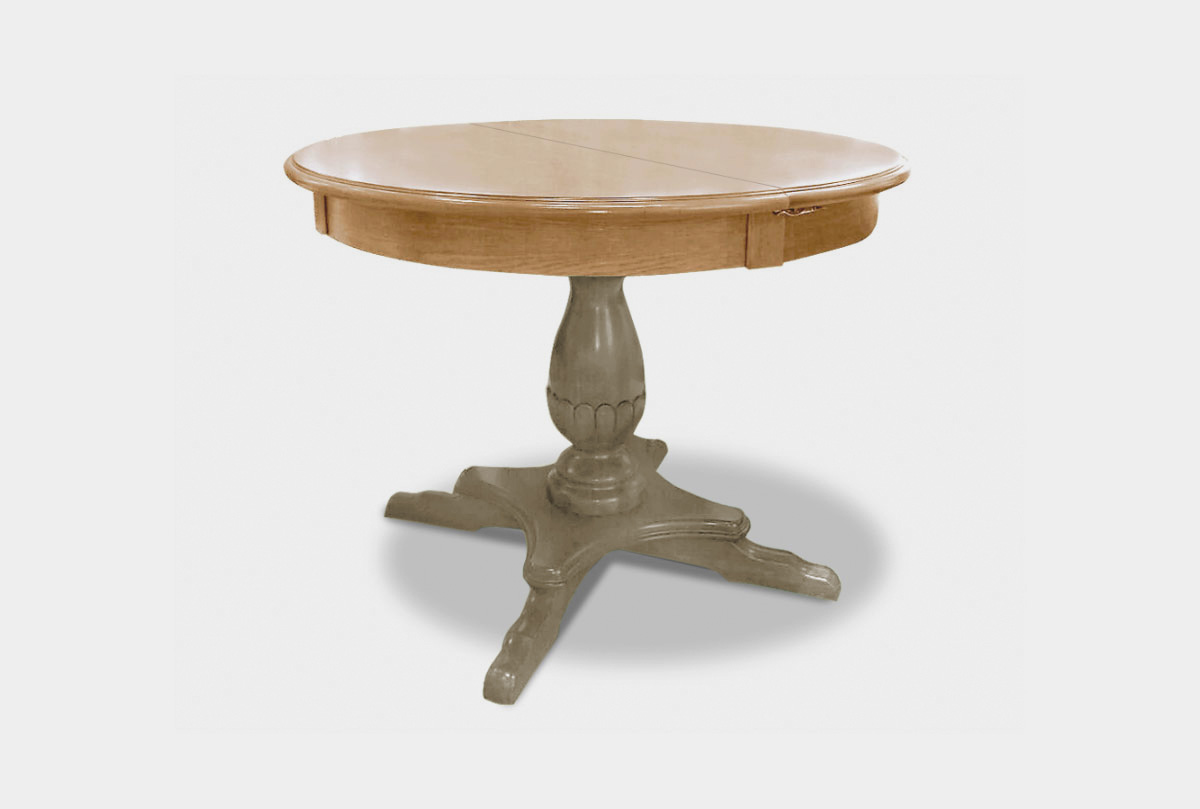 Раскладной круглый обеденный стол «Оливия» в цвете «олива» из массива и шпона ольхи. Благодаря уникальному сочетанию цветов, стол выглядит ярко и индивидуально.
