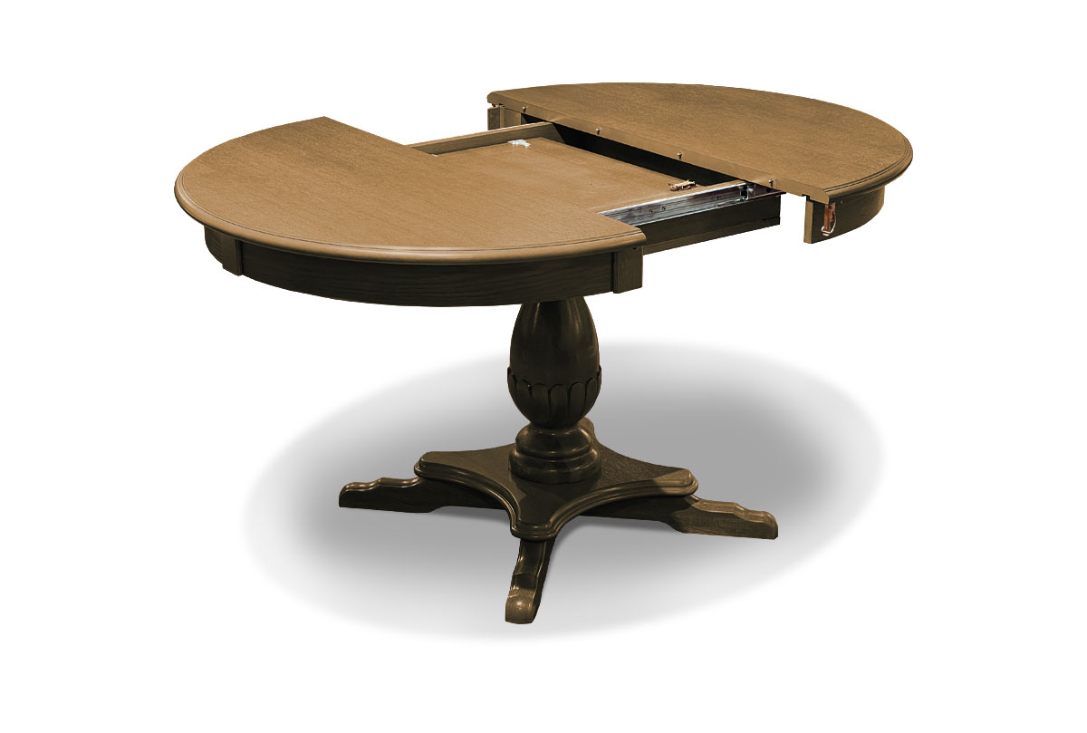 Круглый раскладной обеденный стол «Полонез» (Polonez) из массива и шпона дуба. Размеры стола : Ш1100/1350 х В780 х Г1100 мм.