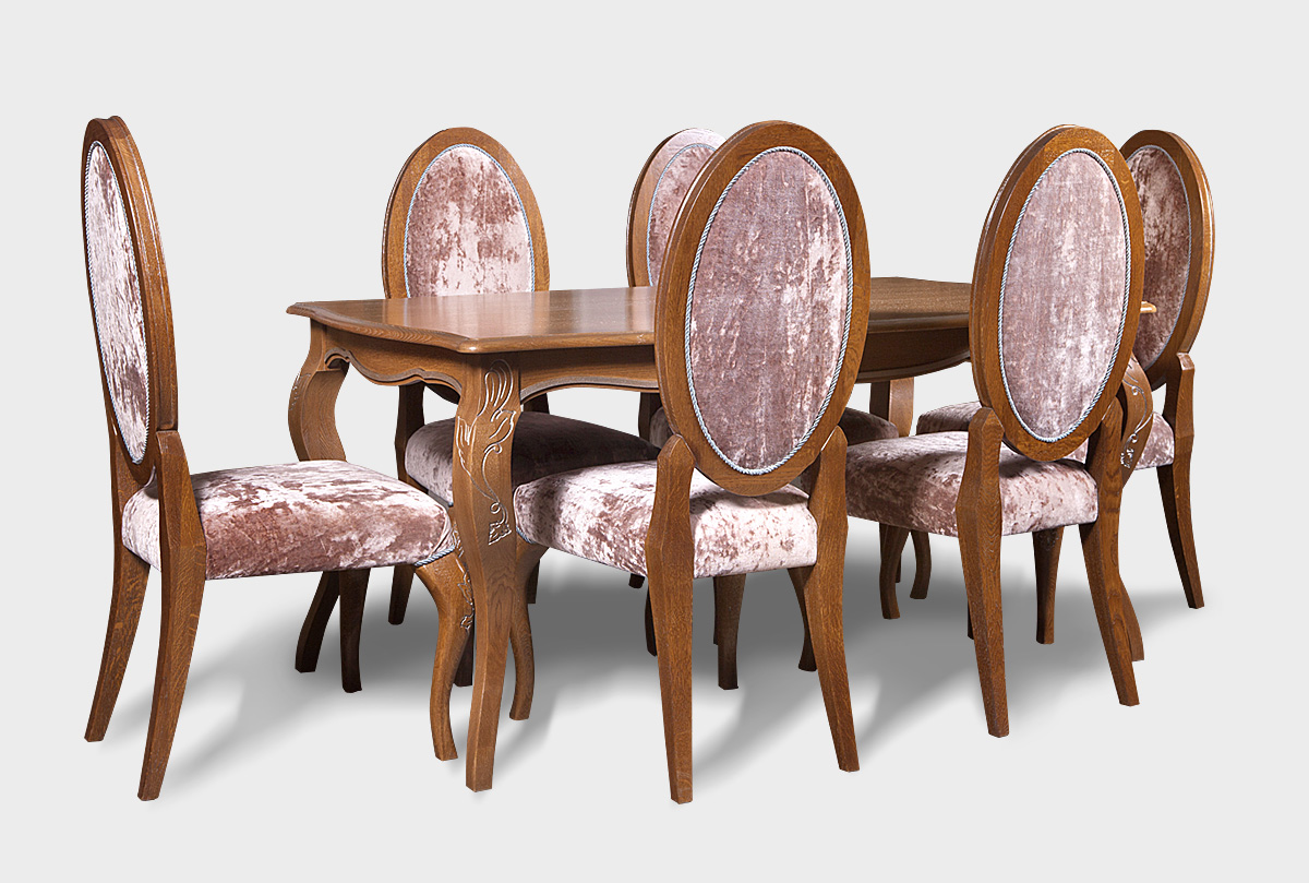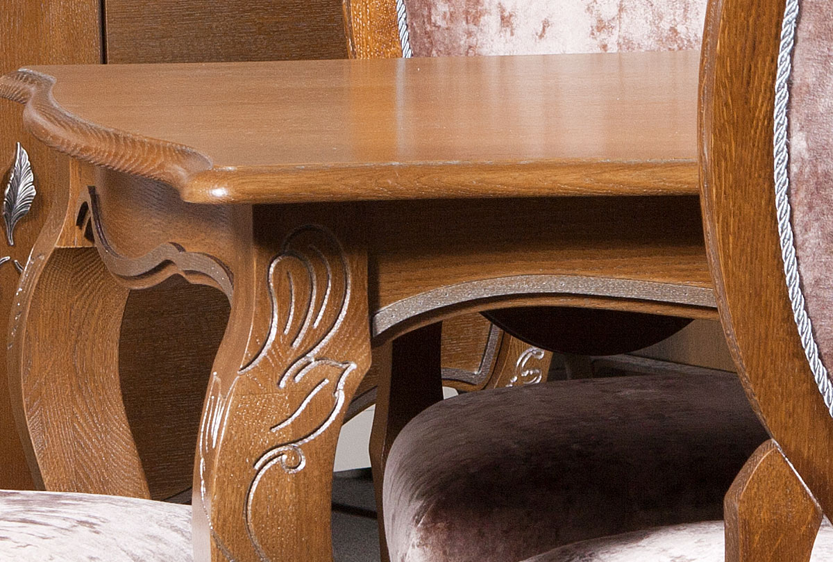 Стол обеденный из коллекции «Трио», благодаря утонченному дизайну с гнутыми ножки и декоративной резьбе, займет центральное место в любой столовой или гостиной. За ним с удобством могут разместиться до 6 человек.