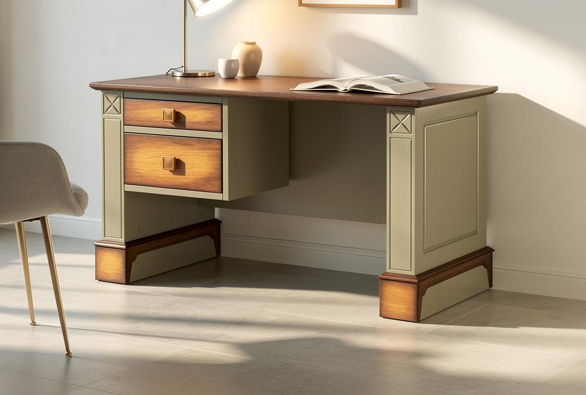 Письменный стол Brianson с одной тумбой слева – добротный и стильный, сочетает в себе оригинальный дизайн и практичность выполнен из массива и шпона дуба, тонированный в оттенок: «корсика+дуб». Стол «Бриансон» оснащен двумя выдвижными вместительными ящиками с направляющими полного выдвижения.