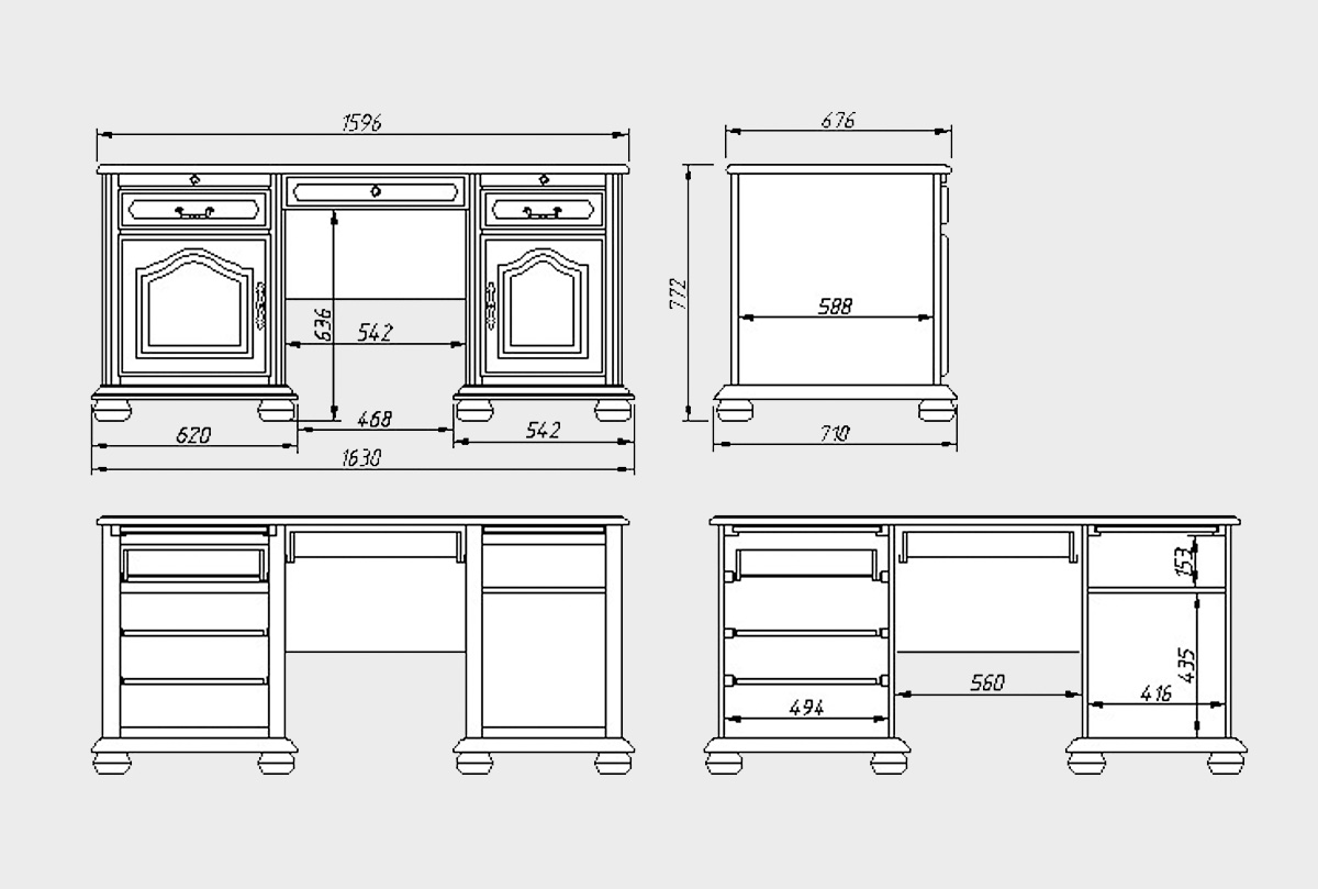 Ноты классики в сочетании со свободным духом Прованса вдохновили нас на создание письменного стола «Давиль». Он отлично подойдет к домашнему кабинету в классическом стиле и станет находкой для ценителей красоты и функциональности. Стол оснащен двумя вместительными тумбами, каждая из которых закрывается на ключ. В одной тумбе размещена полка для системного блока, в другой – два выдвижных ящика для хранения сопутствующих принадлежностей.