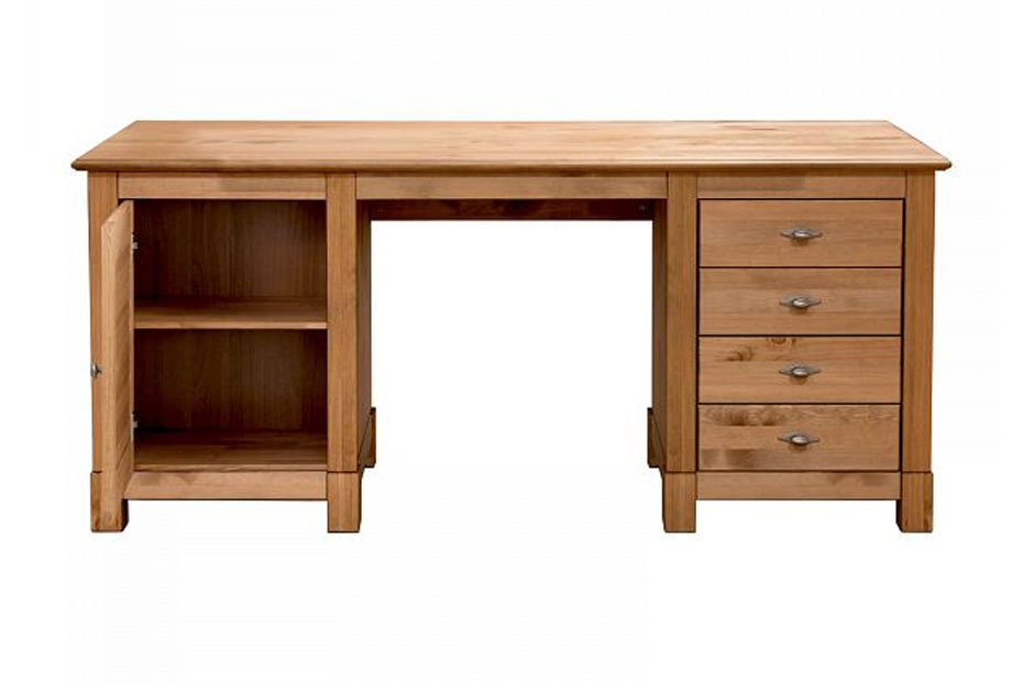 Стол письменный «Рауна» 14 с двумя тумбами. Привлекательный дизайн подчеркивает видимая структура дерева. В результате офисная мебель гармонично вписывается практически в любой дизайн интерьера. Просторная рабочая поверхность позволяет разложить все необходимые офисные принадлежности, кроме того достаточно места и для компьютера с аксессуарами. Таким образом, письменный стол отлично впишется как в кабинет, так и для детской и подростковой комнаты. Благодаря обширному пространству для хранения, на полке за дверью и в ящиках, уместятся все документы, заметки и письменные принадлежности. Ящики расположены на металлических направляющих. Ручки имеют привлекательный винтажный оттенок.