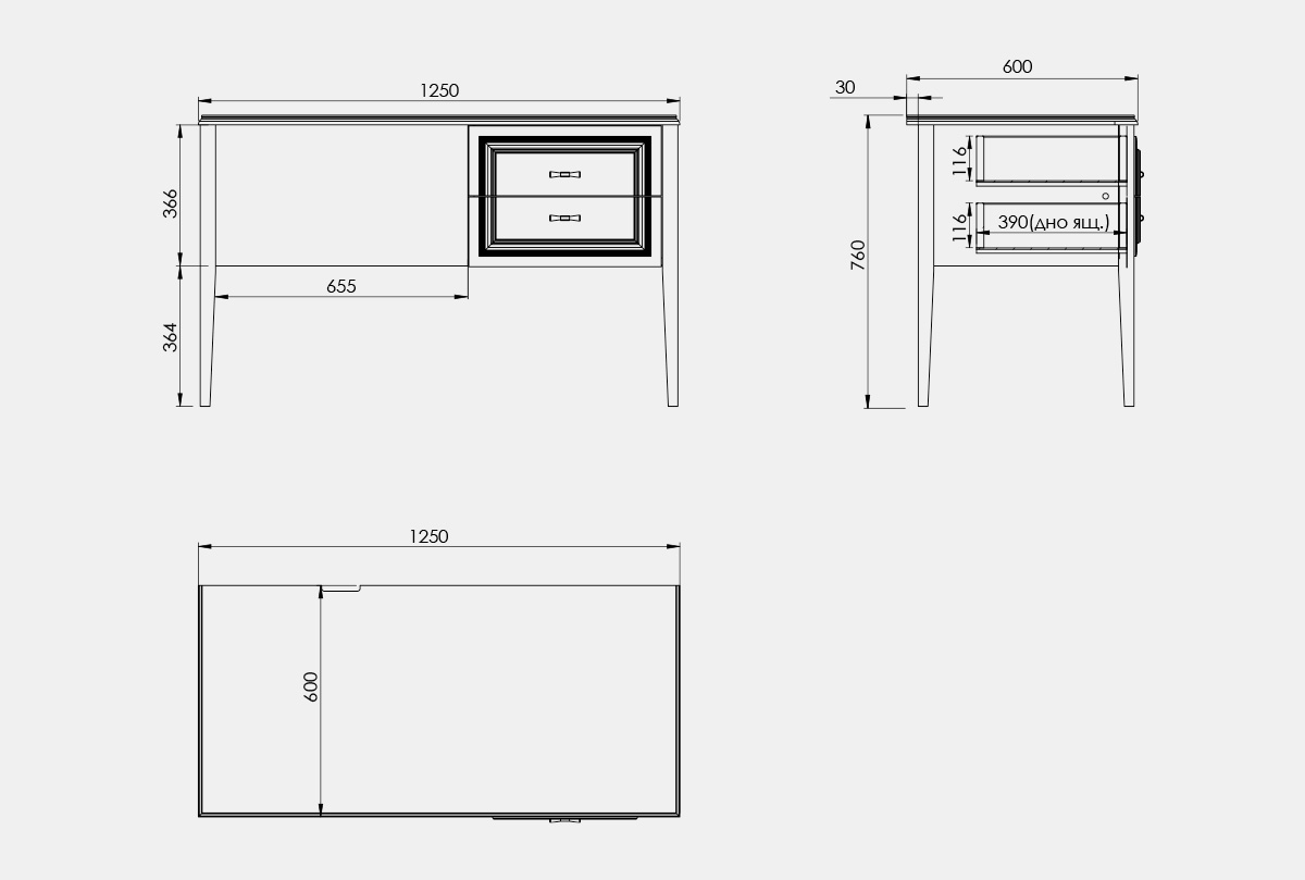 ✅ Два выдвижных ящика с левой стороны помогут расположить в них все письменные принадлежности.