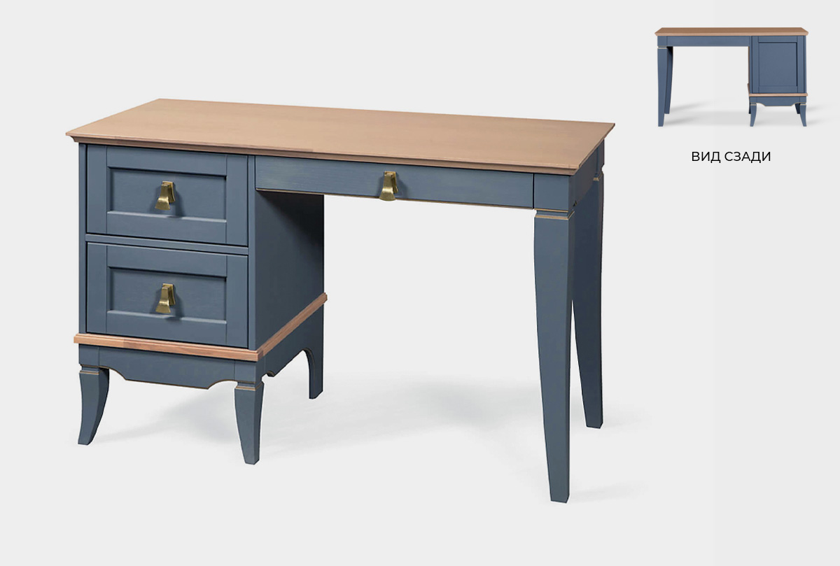 ✅ Задняя стенка декорирована фасадом, который окрашен в основной цвет изделия, что позволяет ставить стол в центре комнаты.