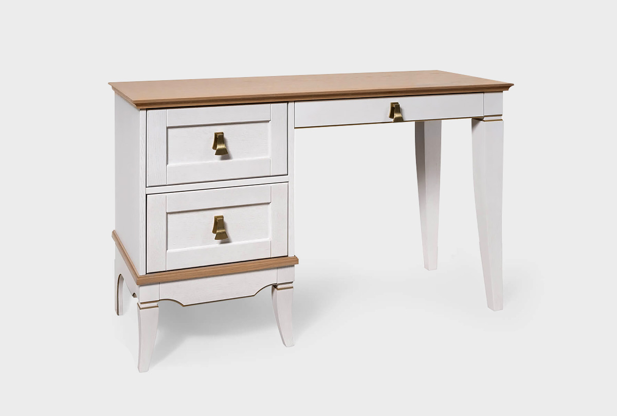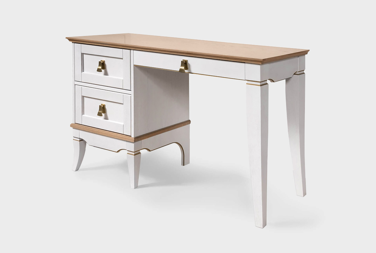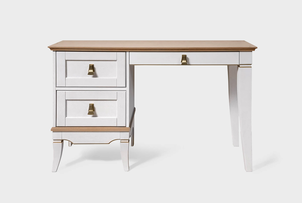 Стол письменный с одной тумбой слева «Стюарт» для Вашей гостиной в классическом стиле, в цвете "дуб белый, натуральный дуб".