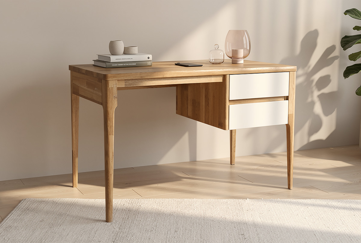 ✅ Стол изготовлен из комбинации материалов - массива дуба и эмали. Из массива дуба изготовлены ноги, столешница, корпус ящиков.