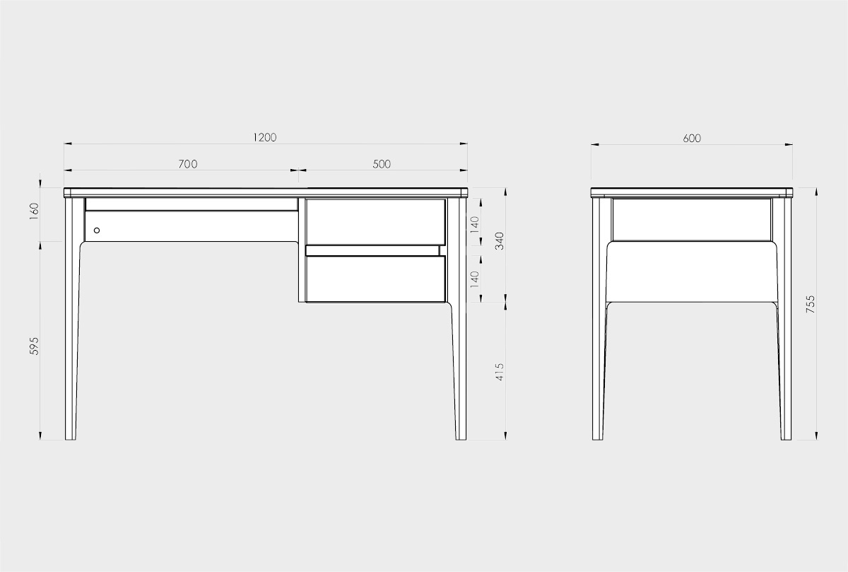 ✅ Стол оснащен двумя выдвижными ящиками для различных мелочей.