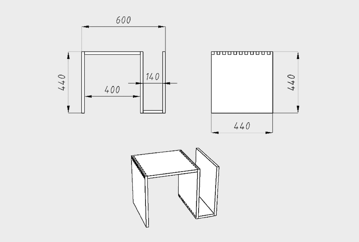 Приставной фигурный столик Art Collection («Art Collection») в цвете «бейц-масло» из массива дуба в стиле Лофт. ШхВхГ 440 х 600 х 440 мм.