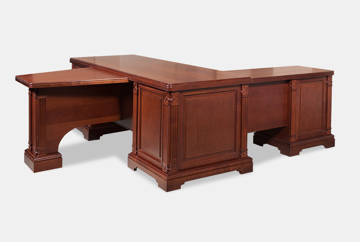 Рабочий стол из классической коллекции "Престиж" подойдет людям с высоким социальным статусом. Изготовленный из высококачественного массива и шпона берёзы, стол поражает своим благородством. Удобная глубина стола позволит оптимально разместить на нем необходимую технику, канцелярские принадлежности и расположиться самому пользователю. Резная декоративная отделка, массивность элементов и тёплые цветовые оттенки, присущие классике, подчеркнут его изысканность и ненавязчивую роскошь.