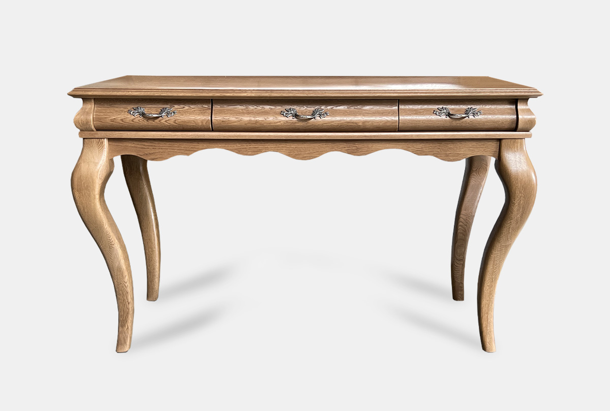 Изящный и утонченный туалетный стол «Тэфи» в цвете «классик» придется по вкусу любой женщине. Плавные изгибы ног, нарядная юбка в сочетании с массивом благородного дуба, тонированного в один из предложенных цветов – вот истинное очарование современной классики. Стол оснащен тремя выдвижными ящиками, где найдут место все туалетные принадлежности и другие мелочи.