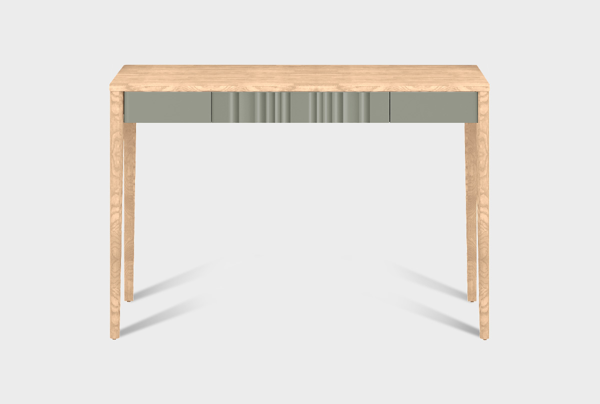 Стол туалетный «Меридиан» (с декором) из дуба с тремя выдвижными ящиками. Корпус шкафа выполнен в цвете «персиковое масло», а фасад — «шалфей».
