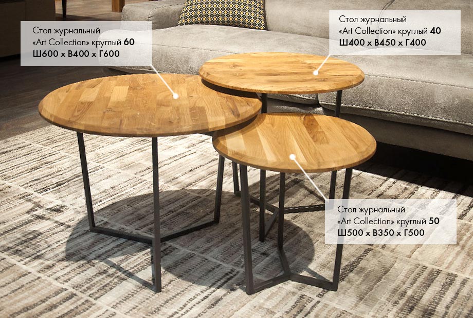 Стол журнальный "Art Collection" круглый 40, бейц-масло + черный металл, (.Г000033134)