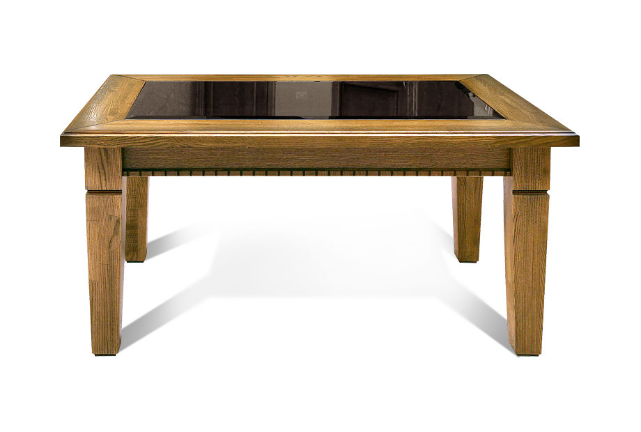 Журнальный стол из коллекции «Верди» поможет Вам дополнить комнату, меблированную в классическом стиле. Он придется по вкусу тем, кто предпочитает проверенный временем дизайн новомодным веяниям. Прямоугольная столешница, отсутствие кричащего оформления и качественный материал изготовления обязательно сделают этот журнальный стол Вашим любимчиком. Высокопрочная вставка из стекла с фацетом придает изделию изюминку и законченный вид.