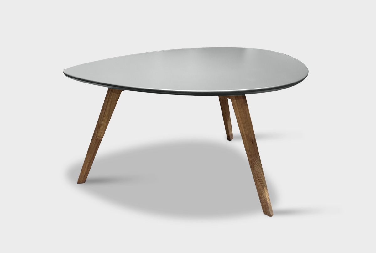 Журнальный стол Wallstreet (капля) в цвете «н-бейц-масло, стл-антрацит» выполнен в современном стиле Лофт с сочетанием текстуры натурального дерева и акцентного цвета стоолешницы.
