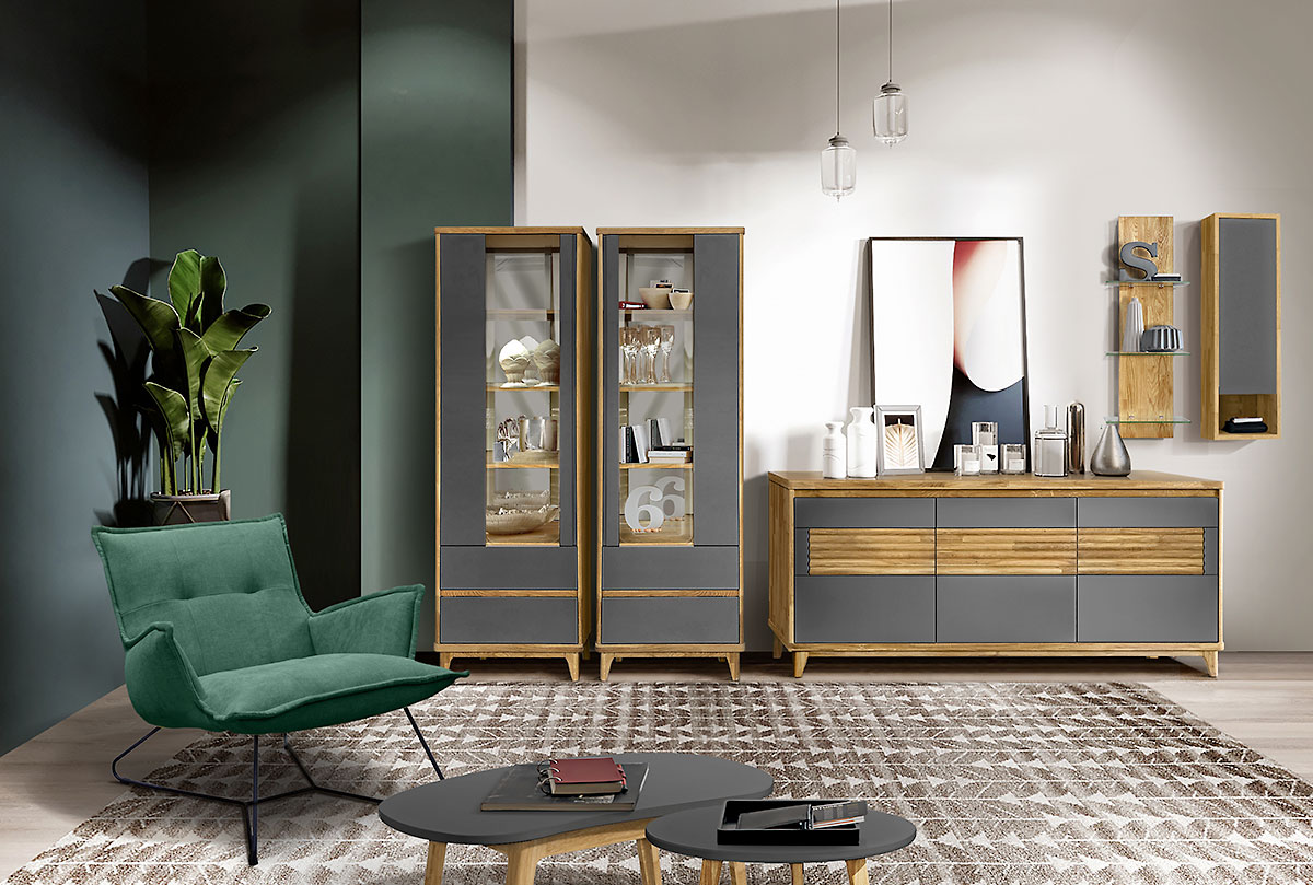 Журнальный круглый стол Wallstreet 60х60 см в цвете «н-бейц-масло, стл-антрацит» выполнен в современном стиле Лофт с сочетанием текстуры натурального дерева и акцентного цвета стоолешницы.