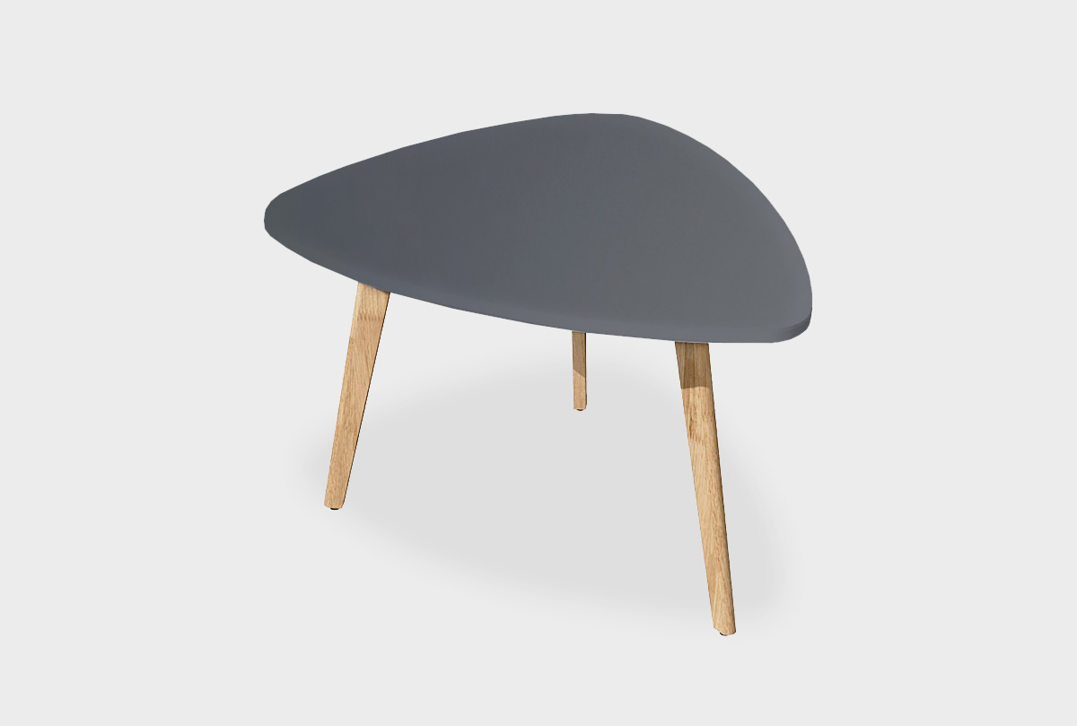 ✅ Треугольный стол изготовлен из комбинации материалов - массива дуба и эмали. Из массива дуба изготовлены ножки.