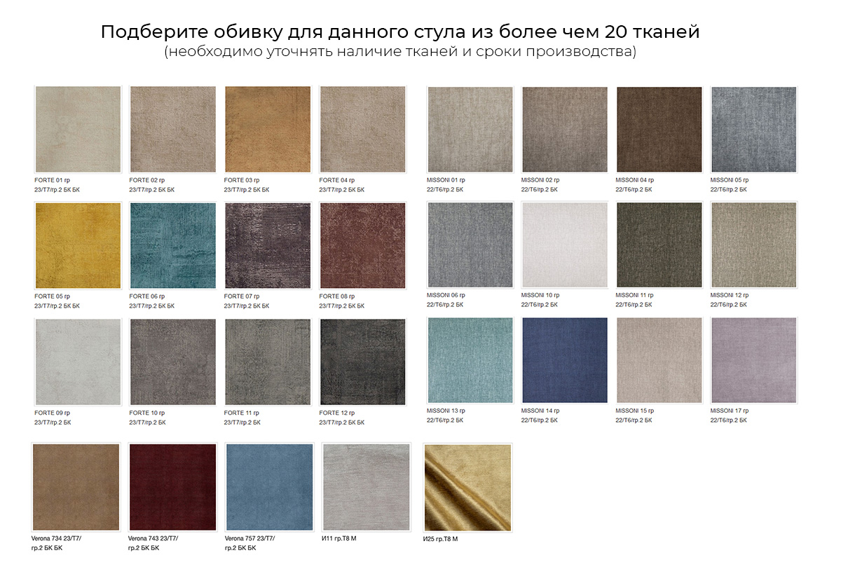 Для заказа стула «Katrin» (Катрин) Вам необходимо выбрать ткань из «Каталога обивок» и оформить заказ в корзине. Стоимость стула указана в базовой ткани и изменится если будет выбрана более дорогая ткань. Наличие выбранной ткани, стоимость и точные сроки производства данного стула под заказ Вам сообщит менеджер после получения предварительного заказа.