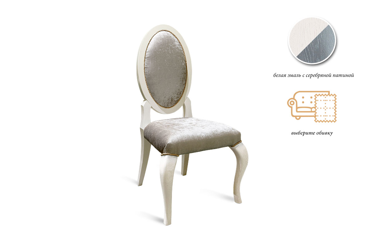 Стул "Луиза"; белая эмаль с серебряной патиной; выберите ткань