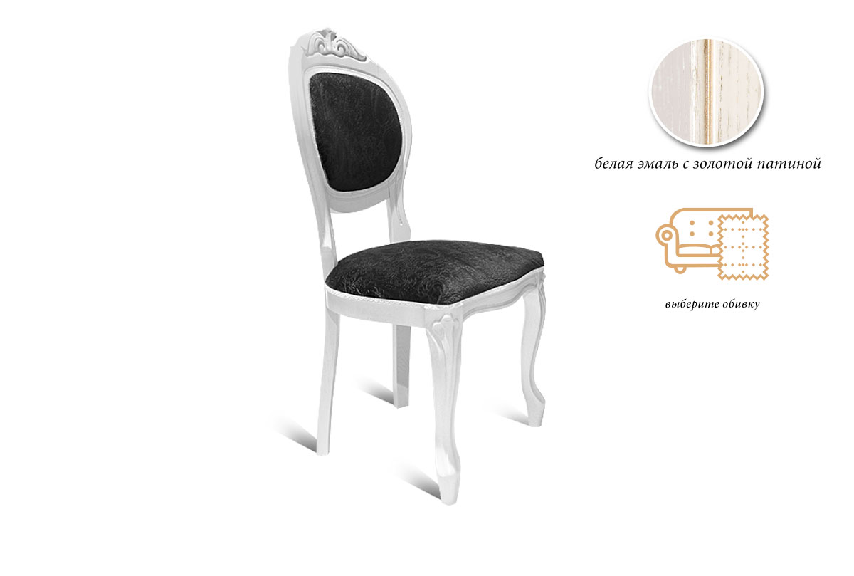 Стул "Орхидея"; белая эмаль с золотой патиной; выберите ткань