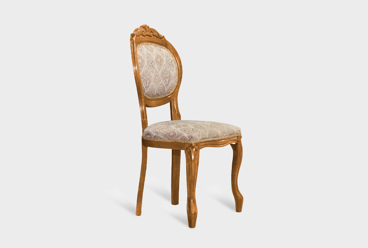Стул «Орхидея» – изящный образец стиля из коллекции «Оскар» (Oskar). Оригинальная интерпретация классических форм читается в изогнутых ножках, резьбе на спинке и дорогой ткани с золотым кантом в качестве обивки. Стул «Орхидея» (Orhideya) обладает индивидуальной эстетикой и благодаря естественной красоте дуба и нескольким цветовым решениям - благородный «орех» или великолепная «белая эмаль с темной патиной» - отлично впишется в традиционный классический интерьер.