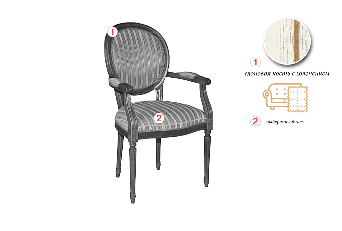 Стул с подлокотниками "Премиум 3101/А", слоновая кость с золочением, (.Г000071309)
