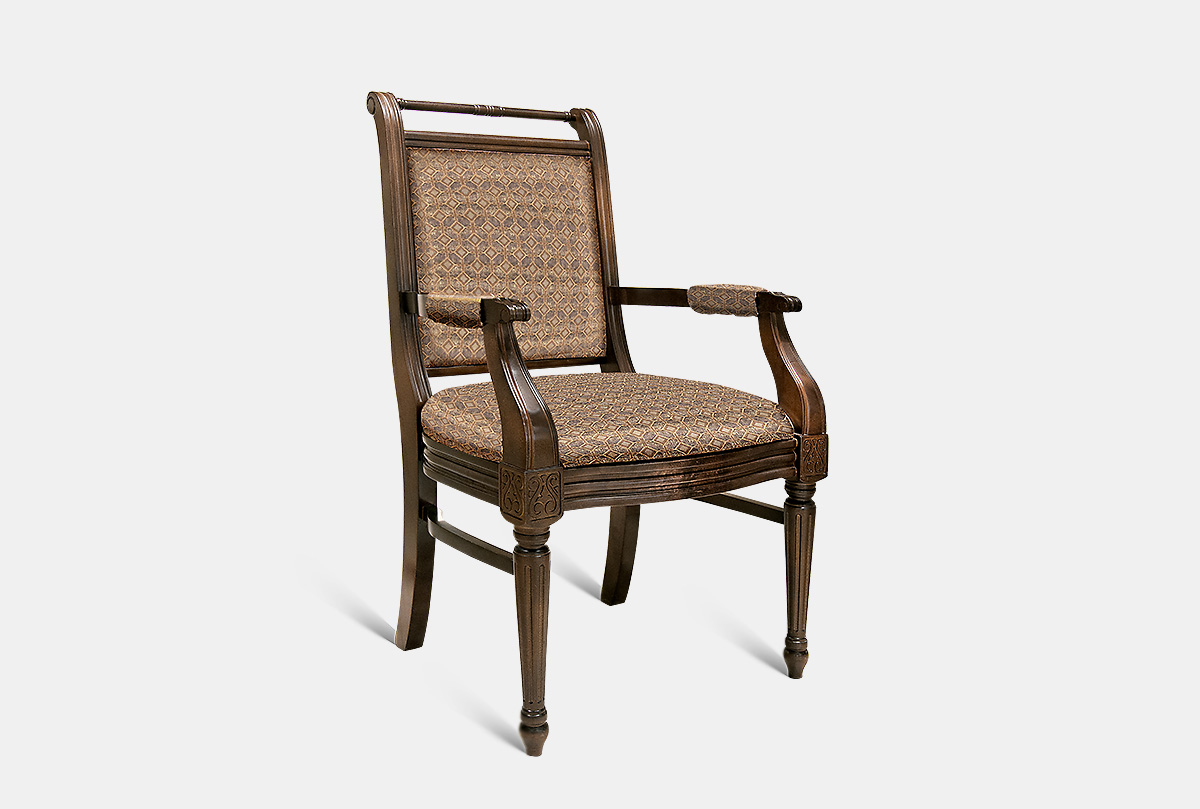 В классических традициях представлен стул с подлокотниками из коллекции «Престиж». Необычная форма резных ножек подчеркивает изысканный оттенок «мокко», «беловежский орех» и «крем с патиной». При этом главная партия в дизайне стула принадлежит, конечно, природному массиву березы, который придаст особую неподдельность вашему интерьеру. А мягкое сиденье и высокая спинка гарантируют комфортную посадку.