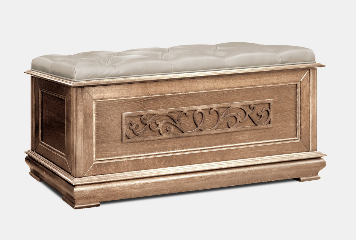 Сундук из массива дуба «Тэфи» привнесет в интерьер восточный колорит. Для этого универсального изделия не существует стилевых ограничений. Великолепный сундук в цвете «классик» – это всегда органичное дополнение к продуманной меблировке спальни, гостиной или прихожей. Сиденье обито натуральной кожей с пиковкой, а стенки и дно сундука, отделанные велюром, превращают предмет интерьера в функциональную ёмкость для хранения предметов обихода и ценных вещей.
