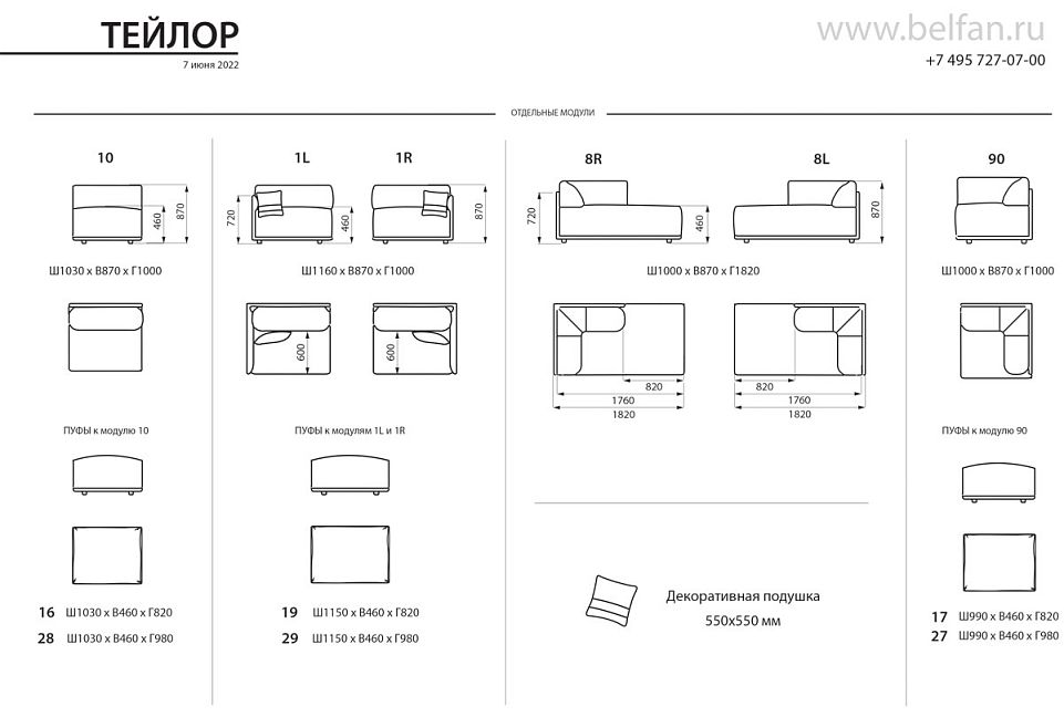 ✅ Подушка декоративная квадратная, с оригинальными вставками, размером 550х550 мм идет в комплекте только с модулями 1L/R.