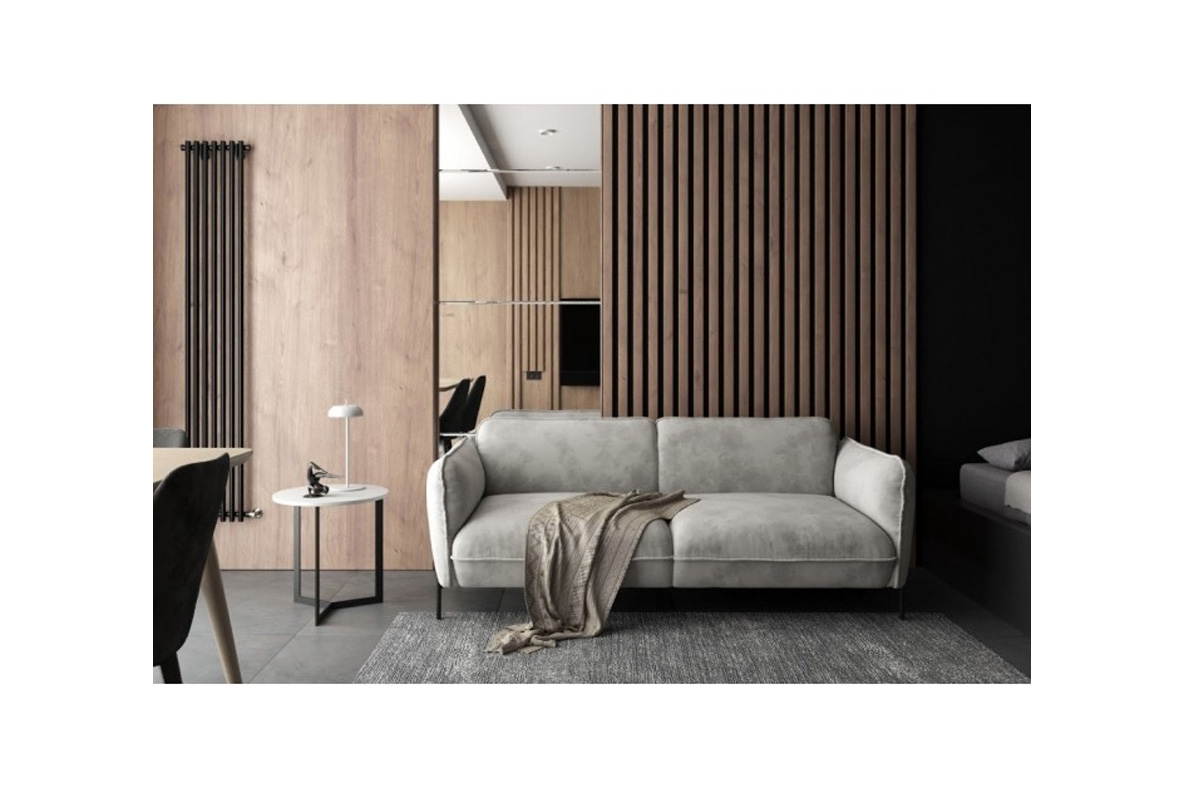 Привлекательный дизайн «Алекс» прекрасно смотрится как в современном лофте, так и в классическом интерьере, в зависимости от выбранной обивки. Благодаря прямым линиям боковин, декоративным швам и канту вдоль подушек, создается яркий визуальный акцент. Прочные металлические опоры, созданы специально для данной коллекции, подчеркнув его неповторимость и эксклюзивность, так же они идеально подходят по высоте для робот-пылесоса. Цвет опор возможно исполнить в трех оттенках: черный, золотой и марципан. В диван-кровать встроен удобный и эргономичный механизм для ежедневного и гостевого сна.