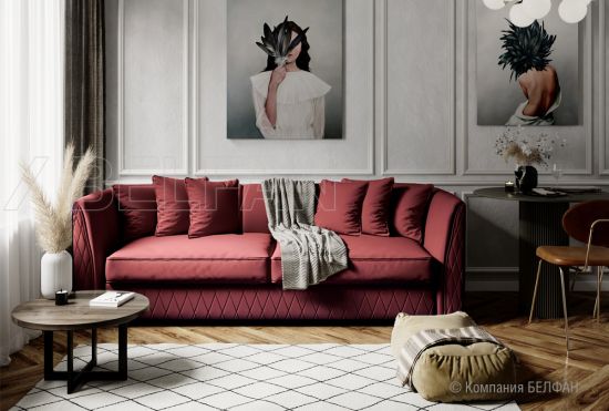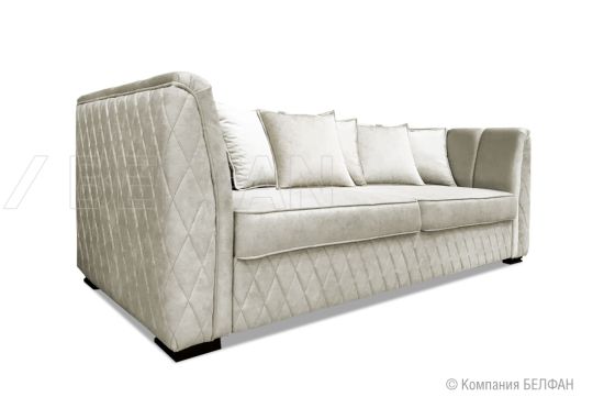 Изящные формы дивана «Marsele» просты и лаконичны, что придает ему роскошь и элегантность в каждой линии. Выполненная вручную декоративная стежка в виде ромбов на передней стенке и внешней части подлокотников обрамлена кантом – это добавляет дизайну воздушности. Стежка сохранит свой первоначальный вид и объем на протяжении всего периода эксплуатации изделия. Верхняя часть подлокотников и спинки создают единую линию, что подчеркивает ультрасовременный дизайн. Диван изготовлен из высококачественных современных гипоаллергенных материалов. Наполнитель подушек не теряет упругости даже при многолетнем постоянном использовании, сохраняя превосходную эргономичность. Модель имеет механизм трансформации в спальное место и предполагает использование для ежедневного сна.