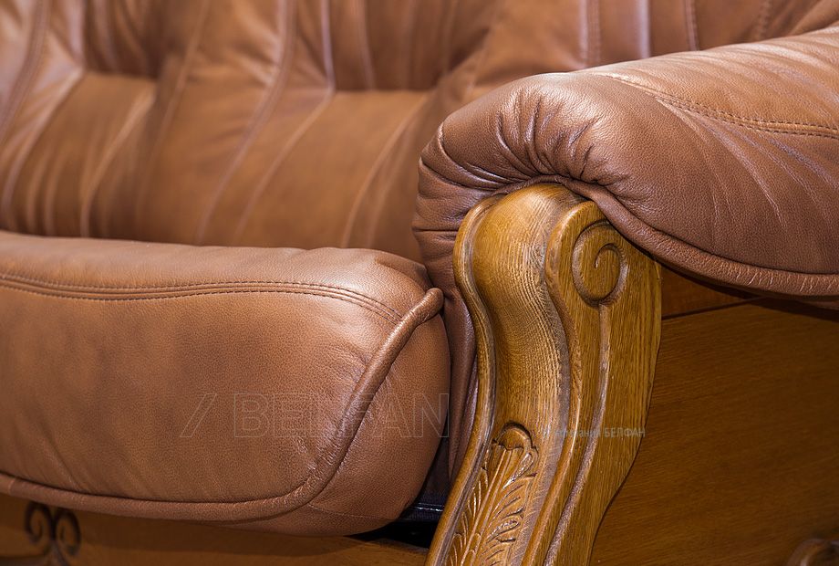Диван 3-х местный «Милан-1» с механизмом трансформации «Миксотойл» («Французская раскладушка»). Каркас - массив дуба, обивка - натуральная кожа.
